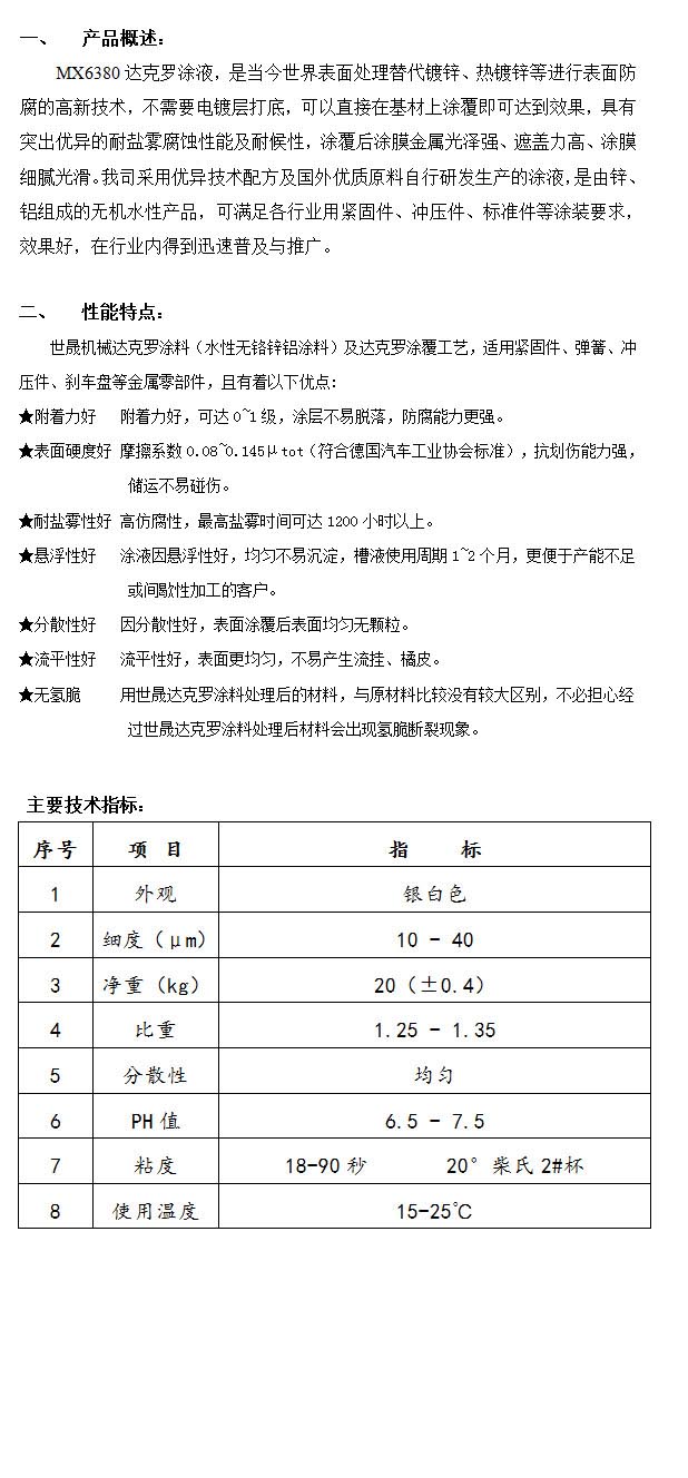 產(chǎn)品名稱:MX6380達(dá)克羅涂液